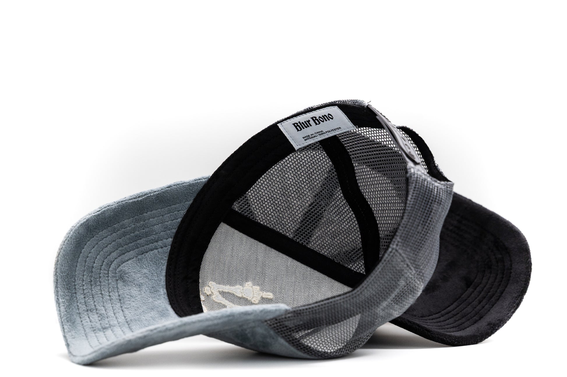 The REBELLION MOON HAT features a premium velvet finish, offering a unique texture. Its structured design include Blur Bonos rebellious edge making it a bold yet versatile accessory.